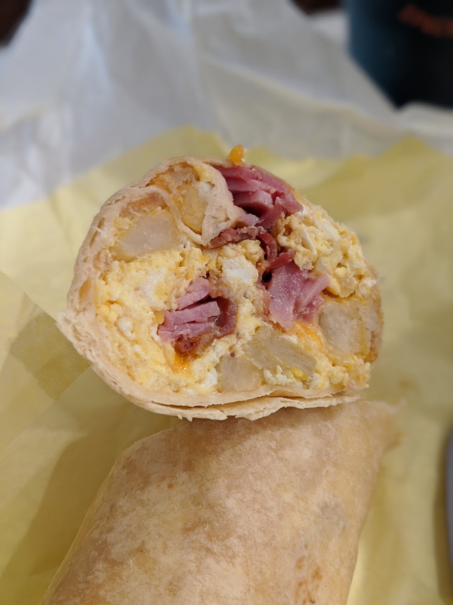 Yummy and filling burrito for a low price! When you walk in, they will take your order on a notepad, they give you a receipt and you sit and they bring your order. After your meal, pay at the register. We sat on the back patio which was so relaxing and peaceful. I enjoyed the burrito which was bursting with flavor and filling. My partner enjoyed the breakfast sandwich. Highly recommend for a tasty, quick and affordable meal!